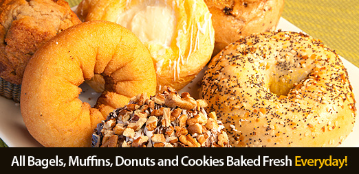 - Enjoy an assortment of freshly baked bagels and croissants, Danish pastries, muffins, scones, donuts and much more accompanied by butter, jelly and flavored cream cheese.